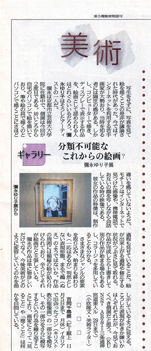 京都新聞 2021年3月13日 小吹隆文さん「彌永ゆり子」展評 [IMG]